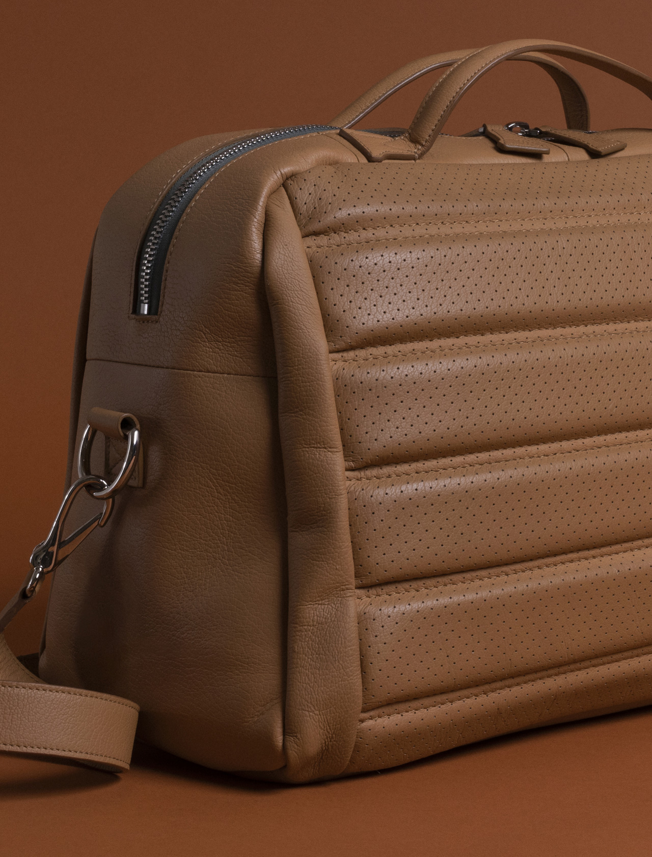 Le sac 48h MILE 01 a été réalisé dans la sellerie en cuir d’une Citroën Cx Pallas de 1979. Le motif singulier de ce modèle prestige nous a inspiré trois créations uniques : un sac 48h, un porte-documents et un sac demoiselle…